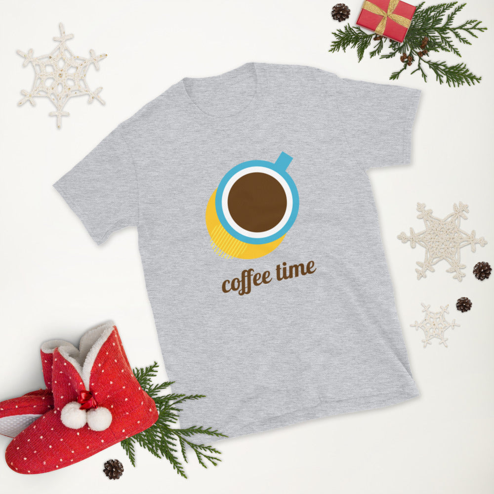 For the coffee lover in your life you've found staple t-shirt of your wardrobe. It's made of a thicker, heavier cotton, but it's still soft and comfy. And the double stitching on the neckline and sleeves add more durability to what is sure to be a favorite!